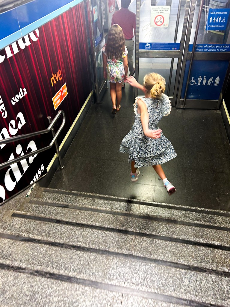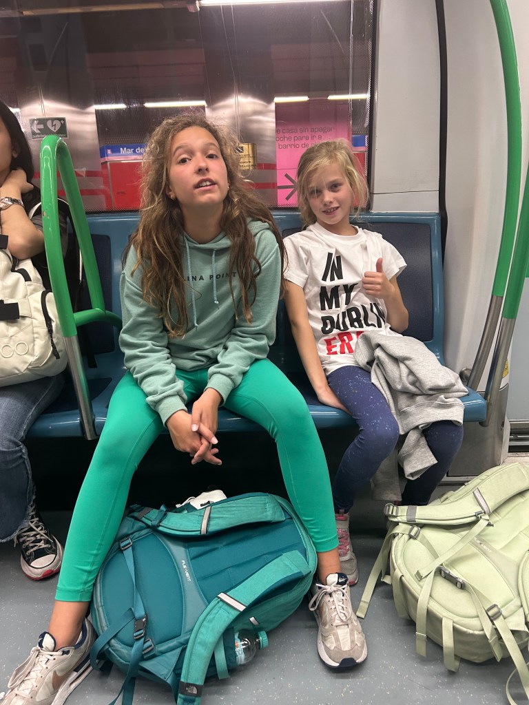 We took the late RyanAir flight out of Dublin and arrived in Madrid around 1 a.m. We assumed we would be able to grab a taxi from the airport to our house swap. But a word to the wise…at 1 a.m. in a foreign country, where you don’t speak the language, never make assumptions. None of the taxis would take a group of 5. In hindsight, we could have grabbed two taxis. However, I remembered reading something about the train taking you directly into the city. So, we walked about a half mile, maybe more, through the airport,to the train station. I bought tickets, and went to go ask a man for help locating the train, but shocker, he only spoke Spanish. With the help of another woman working, who had a little bit of English, they began screaming, “Rapido! Rapido!” and pointing towards a flight of stairs. We grabbed all of of our luggage and RAN as fast as we could, only to find the train with the doors closing. In order to avoid having to wait, we threw myself in between the closing doors, pried them open, and piled all the Fritzes and luggage inside. Phew! We made it. About 45 minutes later, we were dumped on a dark street, google maps in hand, and found out apartment by 2 am.