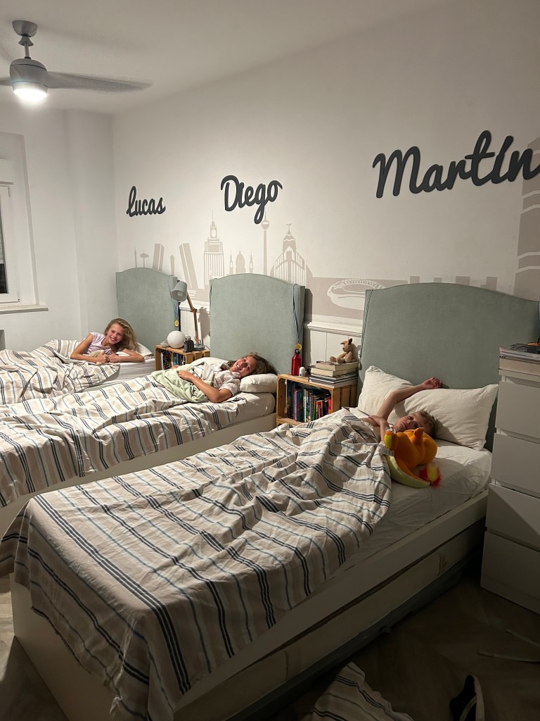 Our last day in Madrid, we wanted to make sure we did something really fun with the children. Our tuk-tuk tour guide told us about an amusement park to take them to. This place was incredible, and we spent most of the day here. That night, Spain was playing in the Eurocup, which we thought would be great to watch while in Spain. The apartment where we stayed had a housekeeper named Silvia, who also babysat. We lined Sylvia up to babysit. Sylvia’s English was just as good as my spanish, so I was a wee bit nervous about leaving them all. However, Eliza had her computer, which she can text and if needed, google translate from. Sylvia turned out to be an angel, taking them to get pizza from a neighborhood pizza parlor, and had Laurence asleep by the time we came in. We were able to go out to eat together and watch the game at the same local Bodega we went to earlier in the week. This was the perfect ending to our time in Spain.