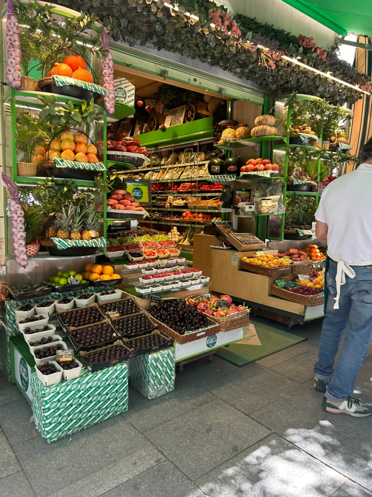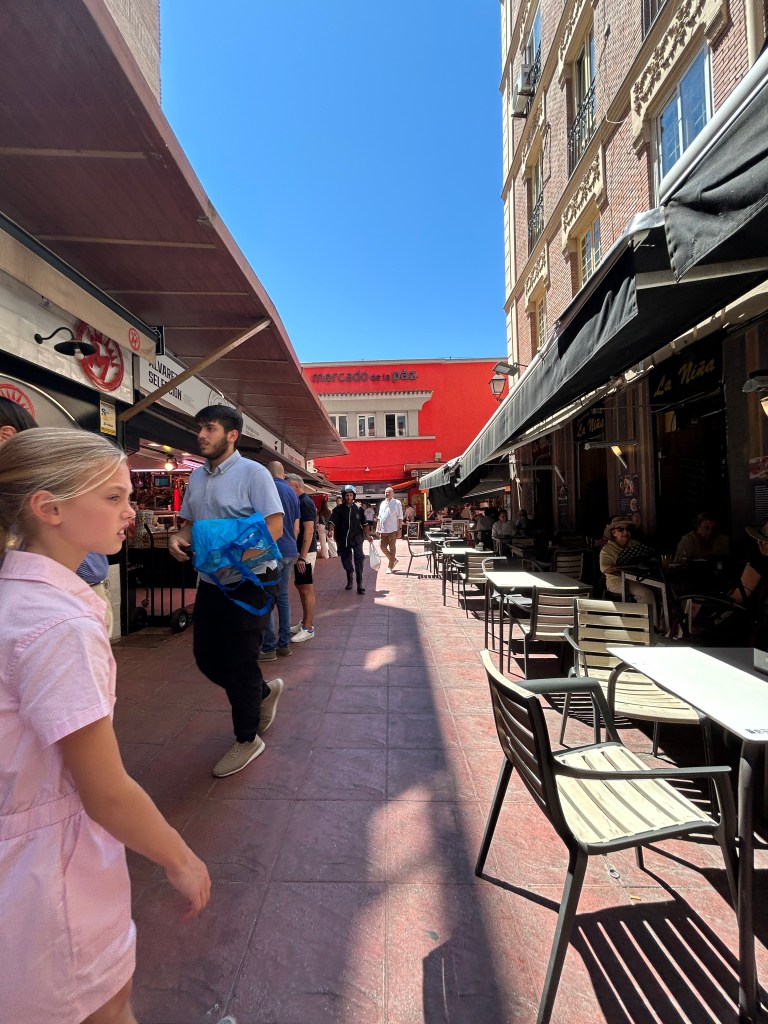 Needless to say, we got a very late start the next morning! With no plan in mind, we decided eating was first on the agenda. We love a food hall, and I think I say this every time I post. We took the metro to Mercado de Paz, which was recommended by a friend. The metro WAS extremely easy to navigate with Google Maps in Madrid. Now eating out was a different story. Again, with language as a barrier, we ate at a place that had the best looking food in front of the diners. We were lucky to score a fantastic waiter who spoke great English, and made the dining experience the first day great! He recommended an ice cream shop for after lunch, which we gladly took him up on, given the heat of Madrid. (Note to self and reader…July in Spain is not the most ideal time to visit.) After our ice cream, we walked around Retiro Park, which resulted in lots of complaints because of the heat and the exhaustion from the travel the day before. So, we ended back at the apartment where we grabbed some snacks on the way in and rested before heading out to dinner.