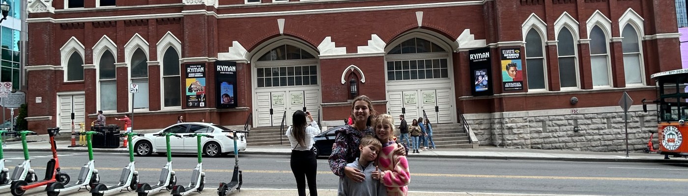 After the museum, we met my Aunt Janie and Uncle David at a meat and three, about a mile down from the museum, called Arnolds. The food was great and once again, any time I can find something for all three children to happily eat (except Laurence…that is always the hardest) it is a win. I LOVED catching up with David and Janie and truly would count this as a highlight of the trip. After lunch, we did a quick walk by to see the Ryman and glance down Broadway, before heading back to the air bnb. The girls and I did a little shopping, while the boys rested.