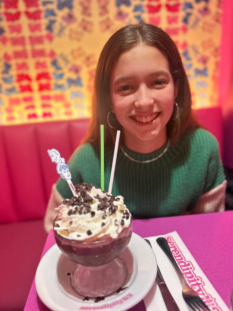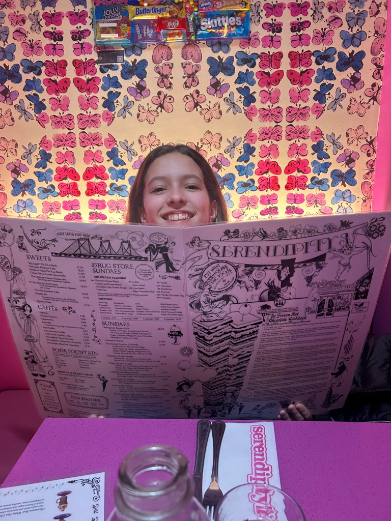 The night we arrived, I made a late reservation at Serendipity in Times Square. Serendipity is known for its famous frozen hot chocolate, and I felt like this would be a good place to grab a late night snack and dessert once we arrived. Like all the touristy places in NYC, Serendipity was fun to see, and the perfect thing to do the first night, but it is overpriced and the food is mediocre for what you get. However, you know that going in, so just embrace that experience, especially when traveling with a tween or teen, who thinks it is amazing.