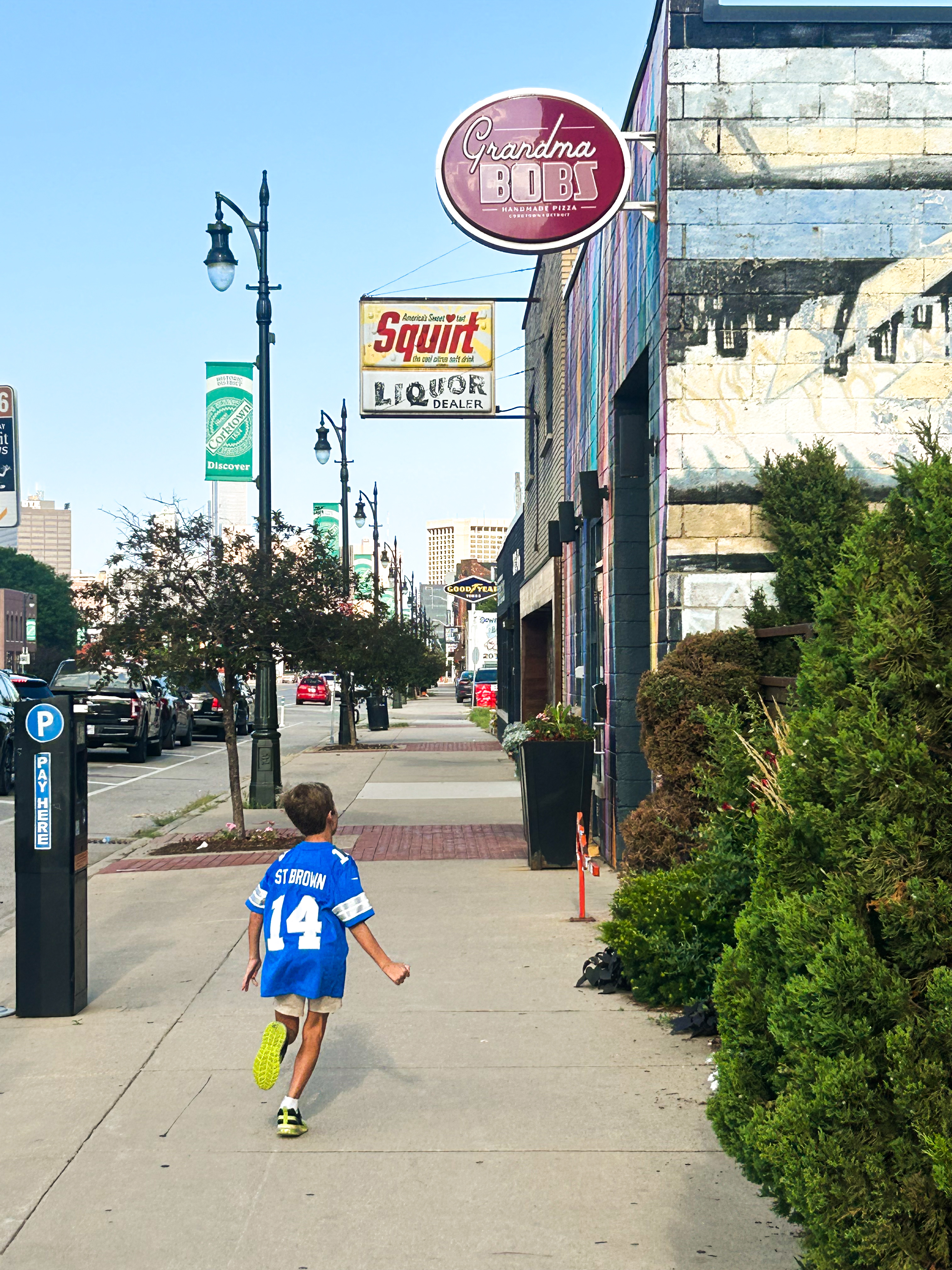 We knew we could not leave Detroit without a deep dish pizza, so after we left Greenfield, we had our Uber drop us off at Grandmom Bob’s pizza, which is also next to the Mercury Bar, which is another good spot someone recommended. We had a drink at the Mercury Bar while we had a wait at Grandma Bob’s, which was nice to sit for a moment after a busy day! We we finally got in to Grandma Bob’s, we ordered a few different things to try and of course, the pizza was amazing. and while some may tell you to go with the famous Buddy’s pizza, a lot of people we spoke to said Grandma Bob’s was the way to go! We ended the night again with another night swim, much to the children’s delight!