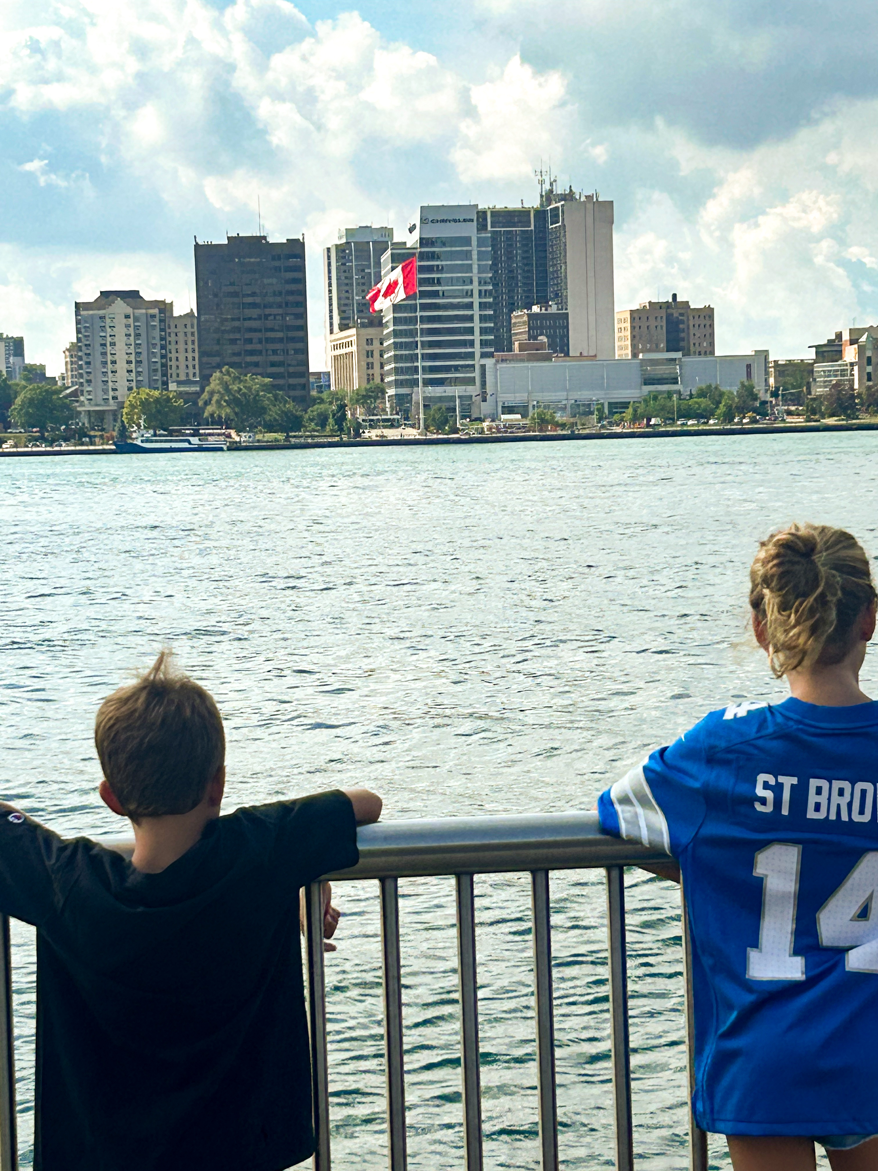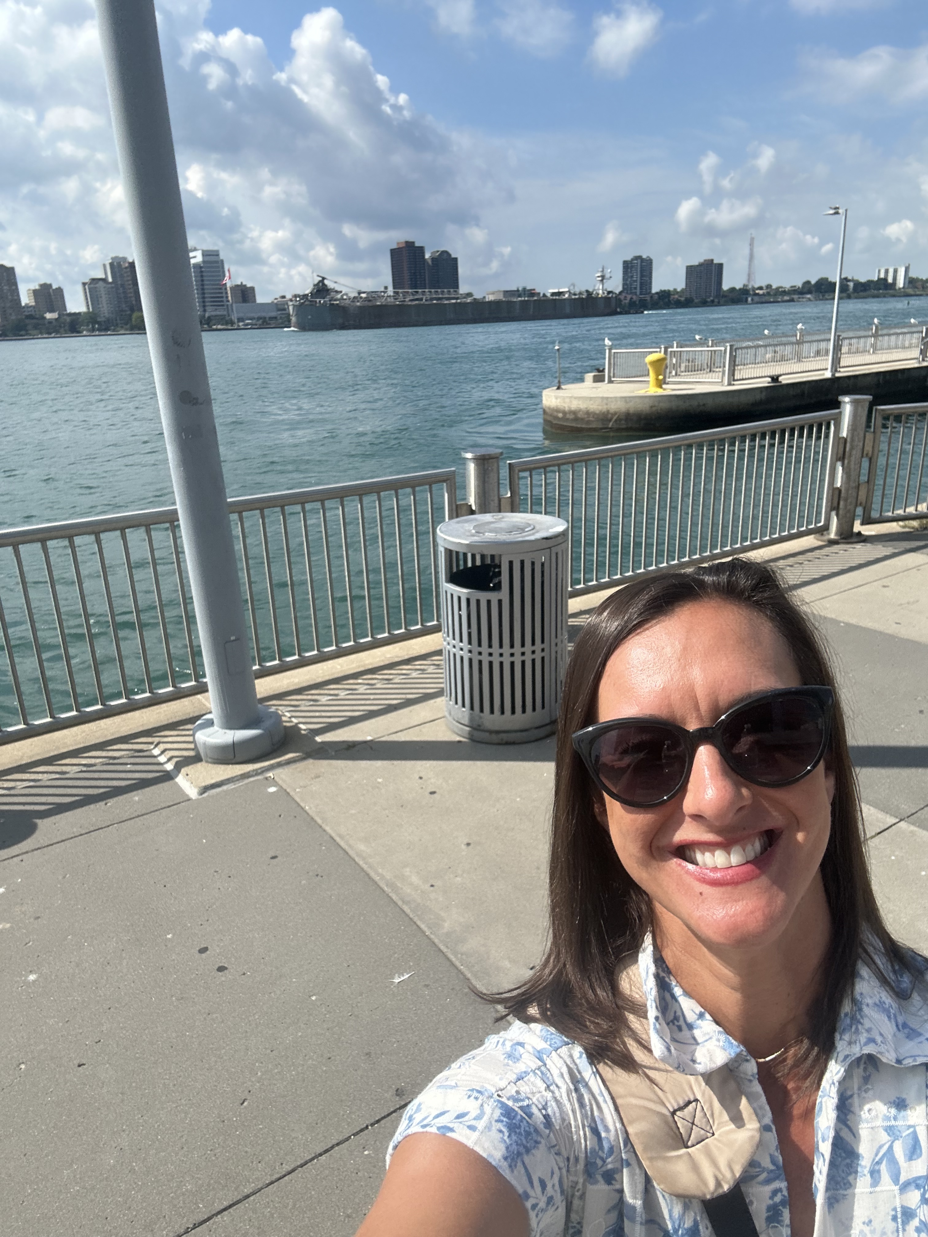 -Walk along riverfront. It was hotter than hades in July. Neat to see Canada on the other side of the river.